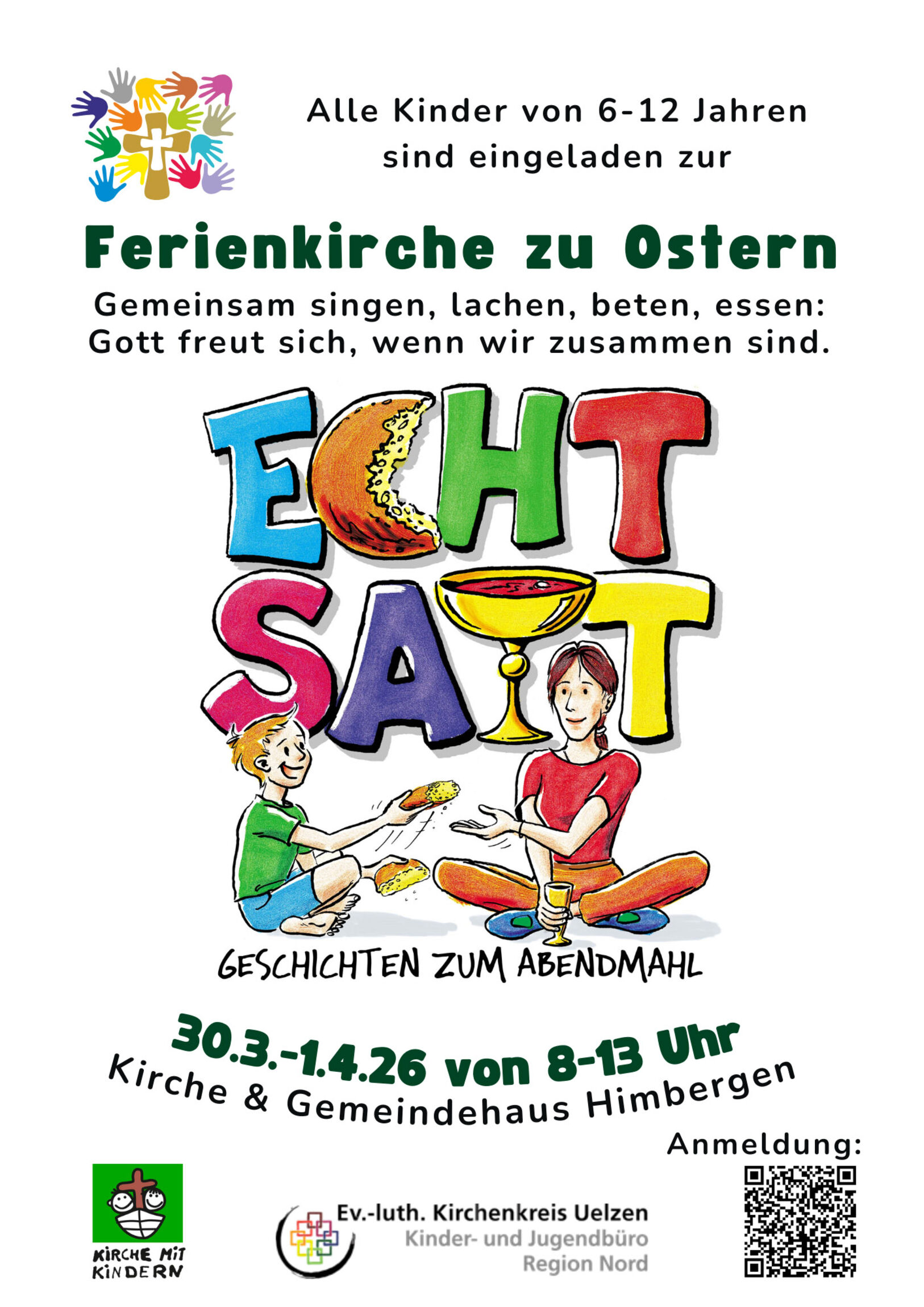 Gemeinsam singen, lachen, beten, essen: Zu Ostern gibt es in diesem Jahr in Himbergen ein regionales Angebot für Kinder von 6 bis 12 Jahren. Seid vom 30.03. bis zum 01.04. herzlich zur Ferienkirche zu Ostern eingeladen:
