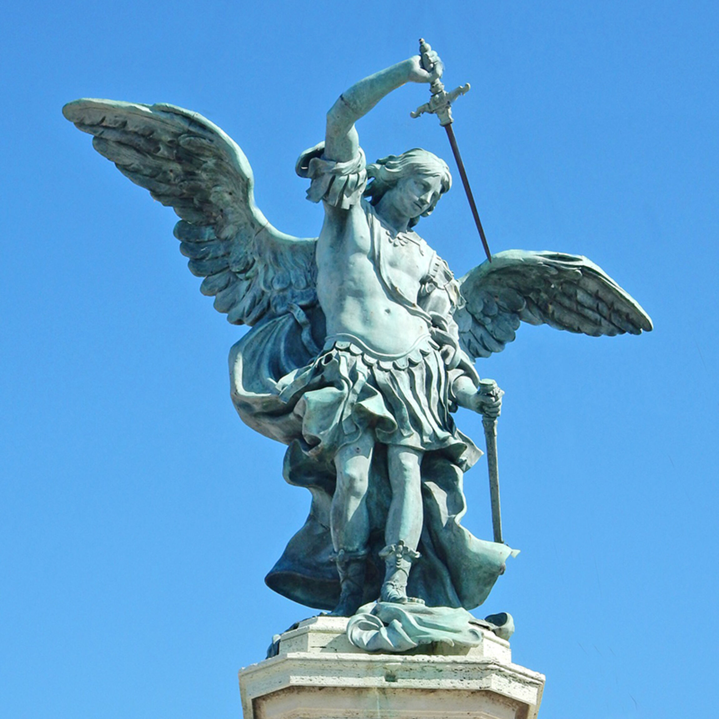 gilt als Anführer der himmlischen Heerscharen und Streiter gegen Tod und Teufel. Auch er wird daher oft als mutiger Kämpfer mit Lanze, Schwert und Schild dargestellt. Ab und zu ringt er auch einen Drachen nieder, Symbol für das Böse.