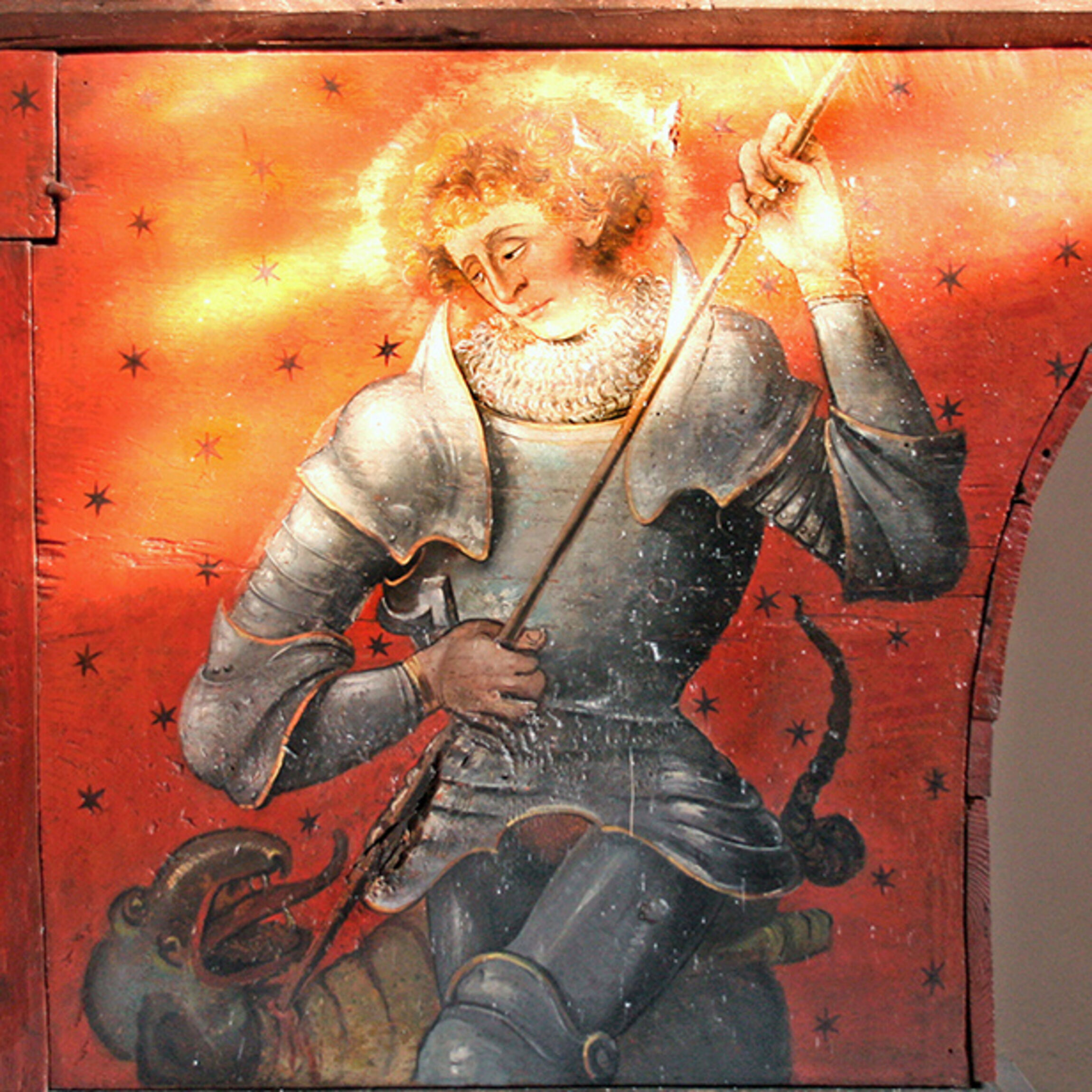 wird dasselbe berichtet, der angeblich im 3. Jahrhundert in der heutigen Türkei lebte. Zu Beginn der Christenverfolgung unter Kaiser Diokletian soll er auf verschiedenste Weisen gefoltert worden sein, weil er sich als Angehöriger der Oberschicht so mutig für die christlichen Gemeinden einsetzte. Berühmt geworden aber ist er als sagenhafter Drachentöter.