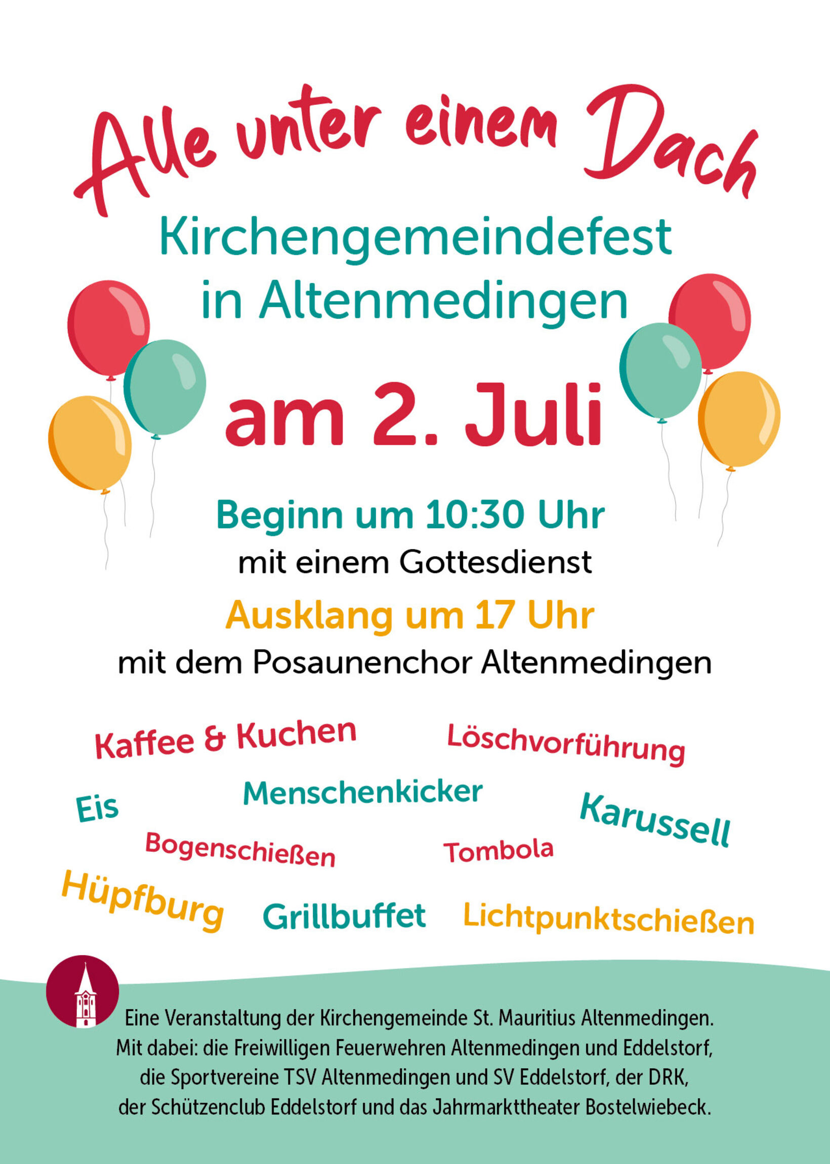 Am 2. Juli 2023 feiern wir in Altenmedingen unser Kirchengemeindefest, zu dem wir Sie und Euch ganz herzlich einladen! Wir starten diesen Tag um 10:30 Uhr mit einem gemeinsamen Gottesdienst und lassen ihn um 17:00 Uhr mit Musik durch den Posaunenchor Altenmedingen ausklingen.