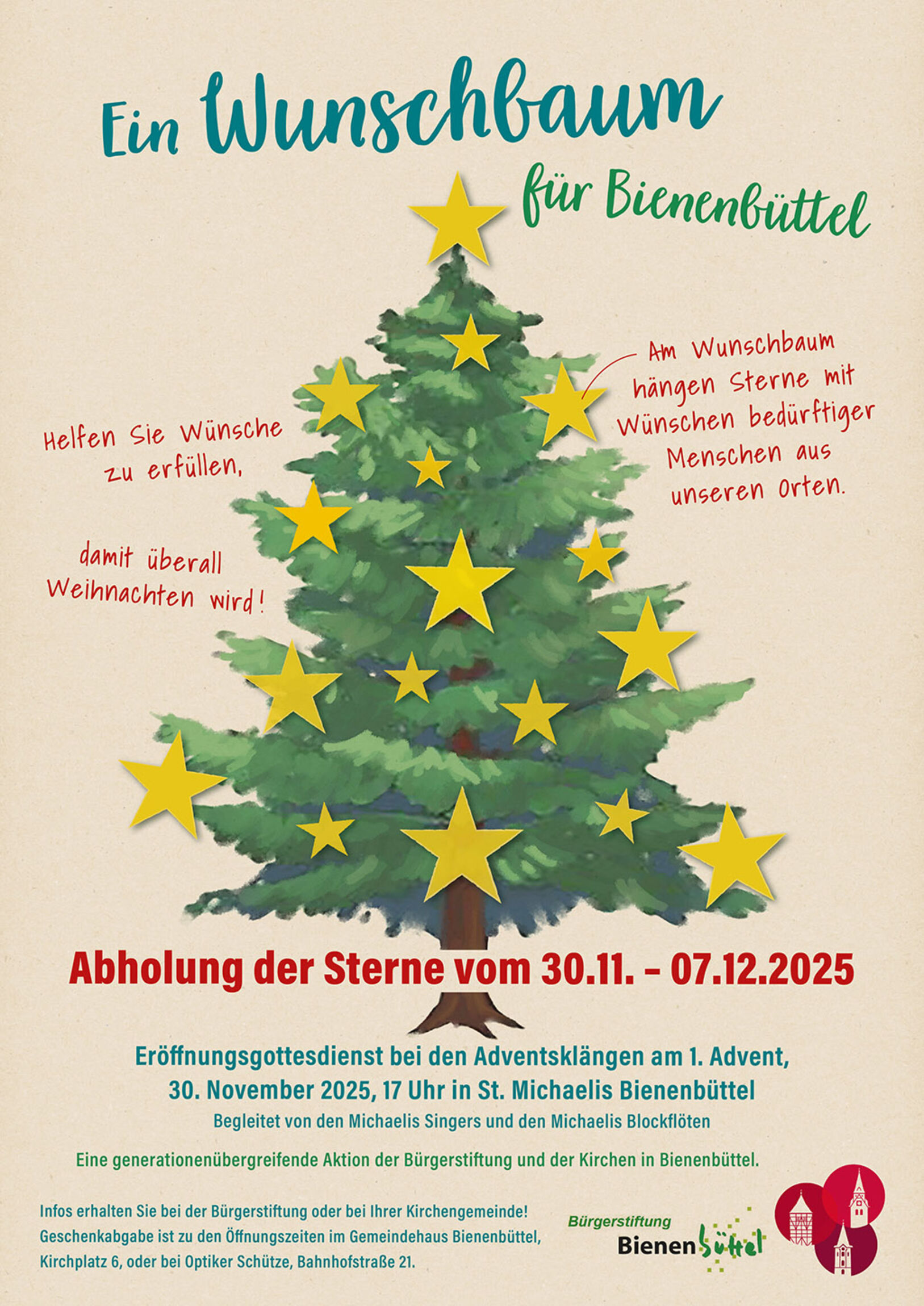 Am 1. Advent eröffnen wir wieder unsere Wunschbaum-Aktion in der St. Michaeliskirche Bienenbüttel ...
