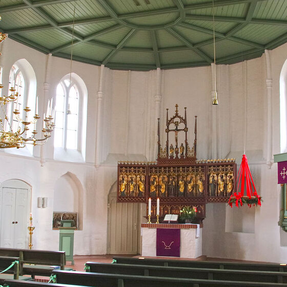Eine Kostbarkeit ist der Altaraufsatz, der wahrscheinlich aus der Braunschweiger Bildhauerwerkstatt von Lewin Storch stammt (Ende 14. Jh.). In der Mitte sind die beiden Klosterheiligen Mauritius und Maria zu entdecken, gerahmt von den Aposteln Petrus und Paulus und zwei weiteren Heiligen. Um 1520 wurde darüber eine Kreuzigunggruppe ergänzt, wohl aus dem Umkreis von Hendrik Stavoer.