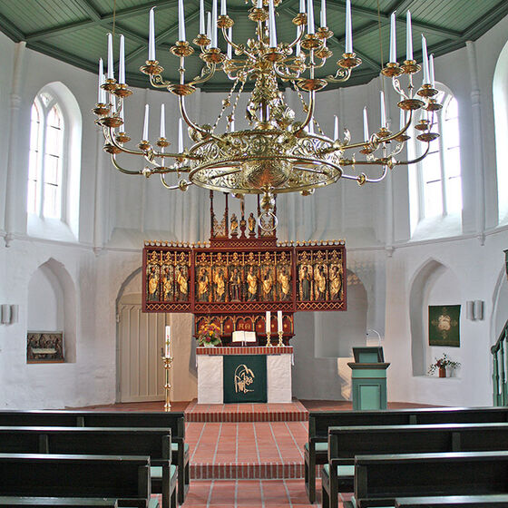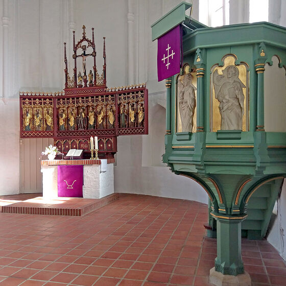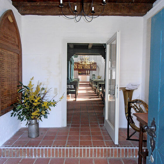 Ins Auge fallen schließlich die beiden Epitaphe (Grabinschriften) von 1656, die an der Nord- bzw. Südwand des Kirchenschiffes prangen.