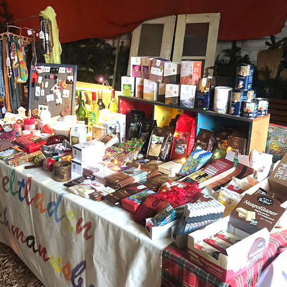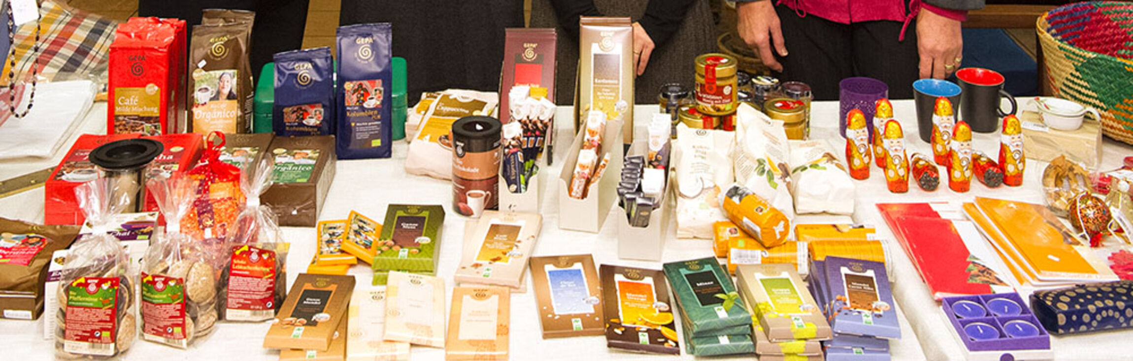 In dieser Zeit bietet der Weltladen Produkte aus dem fairen Handel zum Verkauf. Das bedeutet, dass die Produzenten in Afrika, Asien und Lateinamerika einen angemessenen Preis für ihre Ware erhalten. So wird die Existenz der Menschen im globalen Süden gefördert. Unser Warenangebot umfasst Lebensmittel, wie z.B. Kaffee, Tee, Wein, Schokolade u.a. Süßigkeiten sowie kunsthandwerkliche Produkte wie Schmuck, Tücher, Kerzen, Seifen etc.
